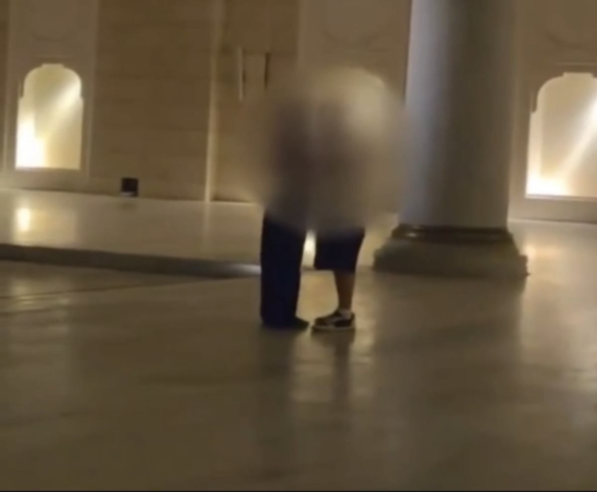 ووفقا لوسائل الإعلام المحلية التي نشرت مقطع فيديو للحادثة، كان الرجل الروسي وصديقته يلتقطان صورا في المسجد ثم تبادلا القبلات.