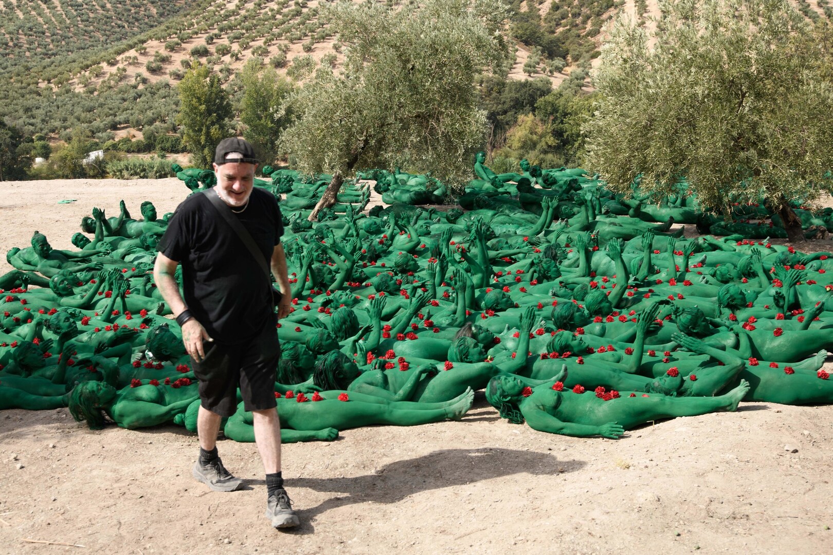 الحياد نيوز – تجرد مئات الأشخاص من ملابسهم جنوب إسبانيا، يوم السبت، وقاموا بطلاء أجسادهم باللون الأخضر الداكن واصطفوا لالتقاط صور فوتوغرافية بعدسة المصور الأمريكي سبنسر تونيك.