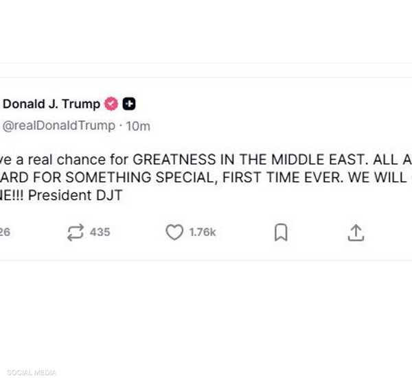 وكتب ترامب في منشوره: “لدينا فرصة حقيقية لتحقيق إنجازات عظيمة في الشرق الأوسط”، من دون تحديد مقصده.